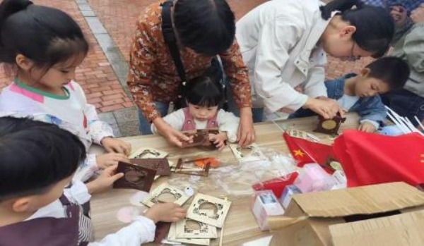 活動(dòng)中,家長(zhǎng)和孩子分工協(xié)作,有人勾勒國(guó)旗紋路,有 人調(diào)配“ 中國(guó)紅” ,有人繪制“我愛(ài)中國(guó)”“五角星”等國(guó) 慶元素,圖案躍然娃娃身上。孩子們舉著作品歡呼,家長(zhǎng)用 鏡頭定格溫馨,現(xiàn)場(chǎng)歡聲笑語(yǔ)不斷,童趣與愛(ài)國(guó)情懷在色彩 中交融綻放。